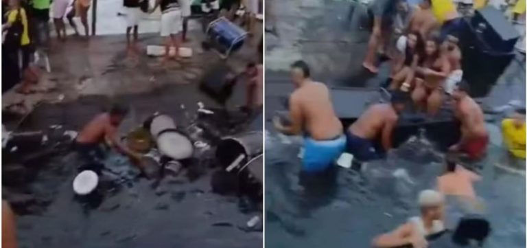 Imagens divulgadas nas redes sociais mostram pessoas na água tentando resgatar instrumentos e equipamentos de som. O vocalista da banda comentou o ocorrido: “Infelizmente perdemos alguns instrumentos, a sonorização também, por causa da água, mas graças a Deus todo mundo está bem”.